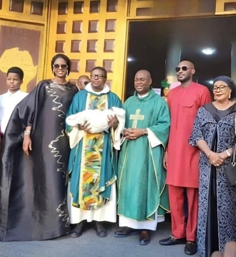 Legendary singer, Innocent Idibia, popularly known as 2Baba, and his wife, Natasha Osawaru , have dedicated their first child in a private church ceremony, delighting fans across Nigeria.