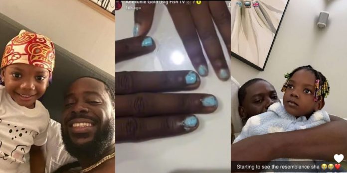 A heartwarming video of singer Adekunle Gold and his daughter, Deja, has taken over social media, showing the little girl painting her father’s nails while chatting away in the cutest accent.