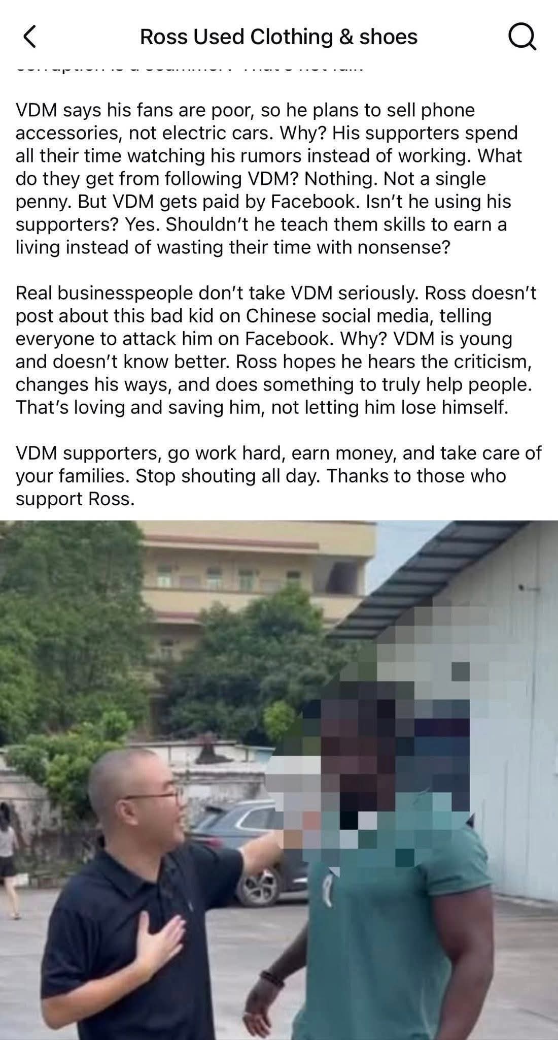 Real businesspeople don’t take VDM seriously. Ross doesn’t post about this bad kid on Chinese social media, telling everyone to attack him on Facebook. Why? VDM is young and doesn’t know better. Ross hopes he hears the criticism, changes his ways, and does something to truly help people. That’s loving and saving him, not letting him lose himself.