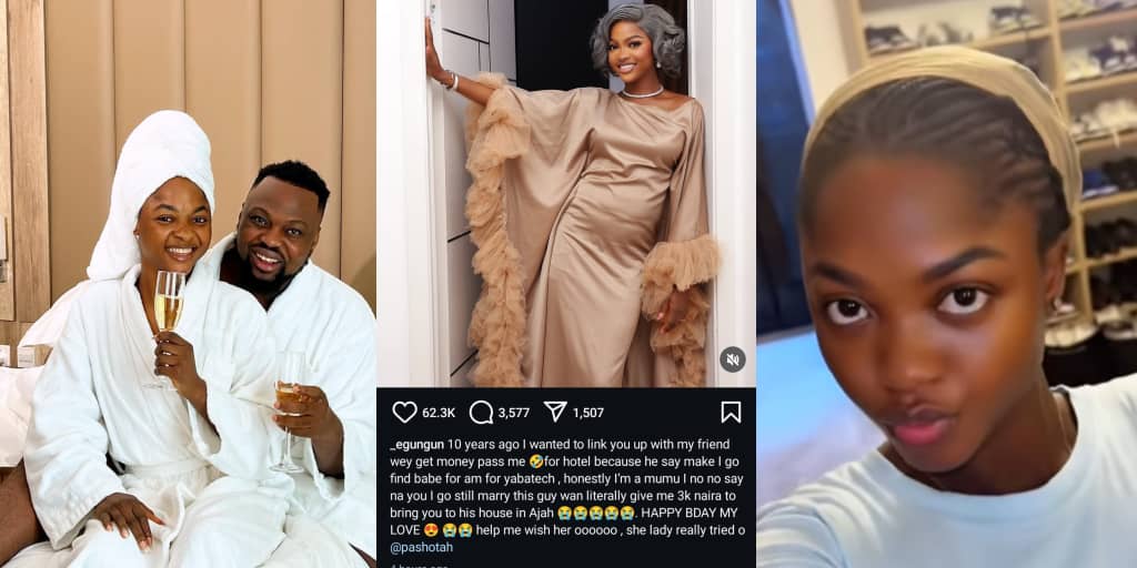 Popular content creator Kuye Oghenevwede Adegoke, known as Egungun of Lagos, celebrated his wife Pashotah’s birthday on Wednesday, July 2, with a heartfelt and surprising tribute.