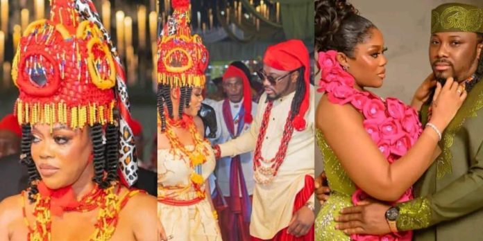 Nollywood actress, Eve Esin’s mother has captured attention online after a video surfaced of her offering her daughter powerful marital advice during her wedding to her Ghanaian partner, Suleiman, in Uyo, Akwa Ibom State.
