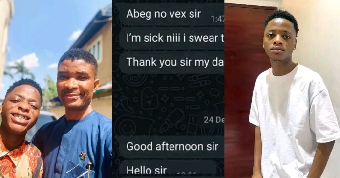 In the chat that has gone viral online, Destiny Boy disclosed that he was extremely unwell, while offering an apology to the man.