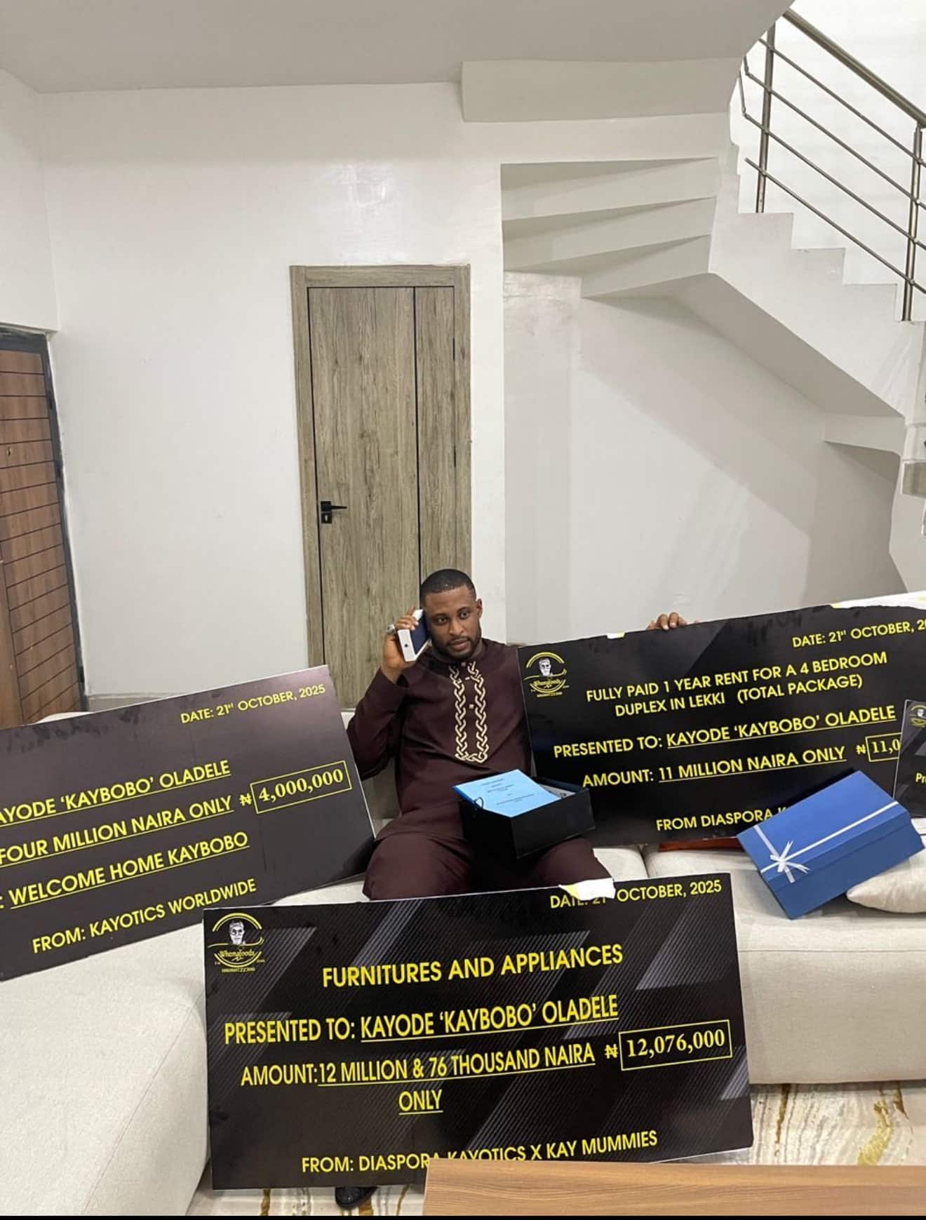Fans of BBNaija reality star Kaybobo have gone all out to celebrate their favourite, as they gift him a fully furnished four-bedroom duplex in Lekki, with a N11 million rent paid for one year, iPhone 17 Pro Max, and others.