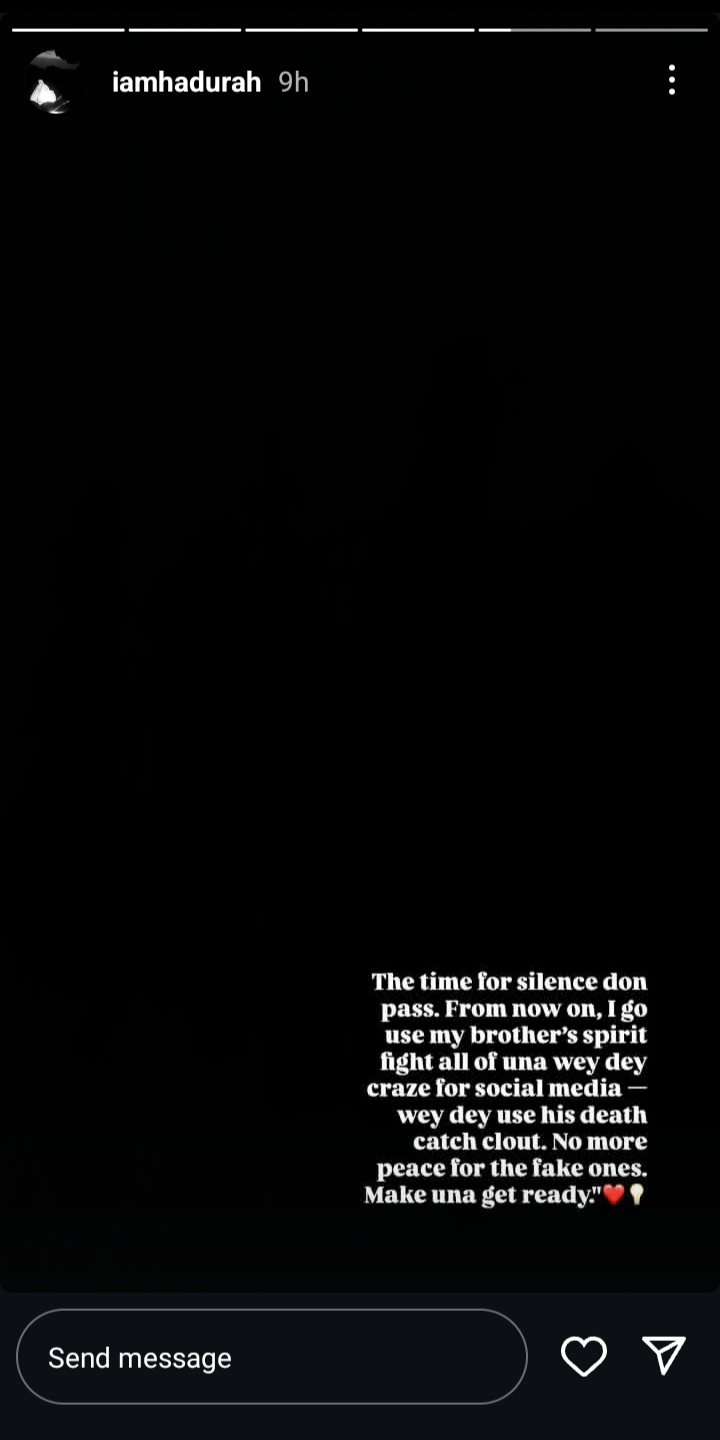 Una think say I silent because I no wan speak for my brother? Make una dey play! The time for observation don pass — na action time we dey now. I kept quiet out of respect, but now, every fake move go meet response. Justice no dey sleep, and neither do”