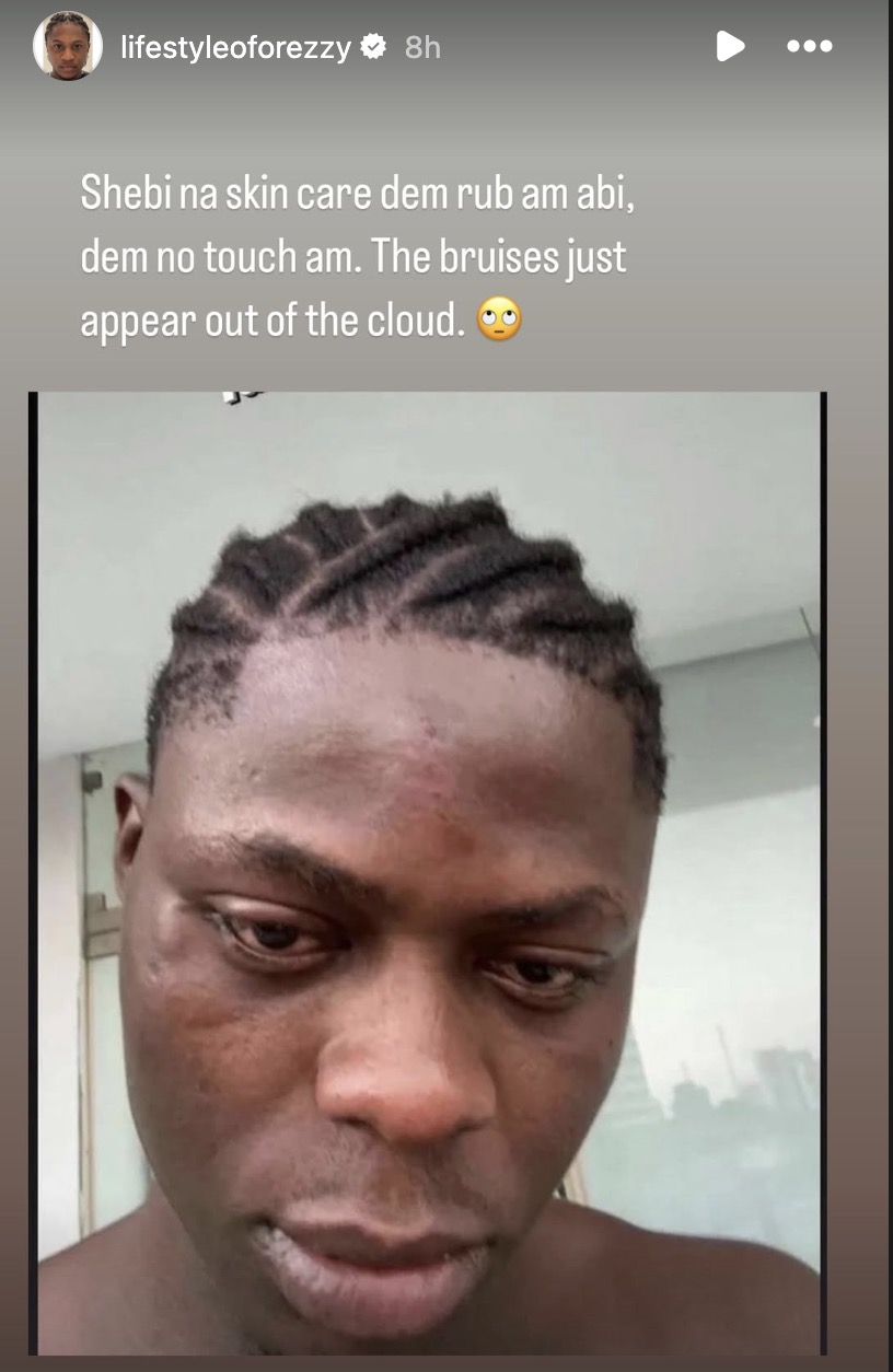 “Shebi na skin care dem rub am in this picture abi, dem no touch am. The bruises just appear out of the cloud,” he said, accompanying the post with a video showing Mohbad in a car with bruises on his face.