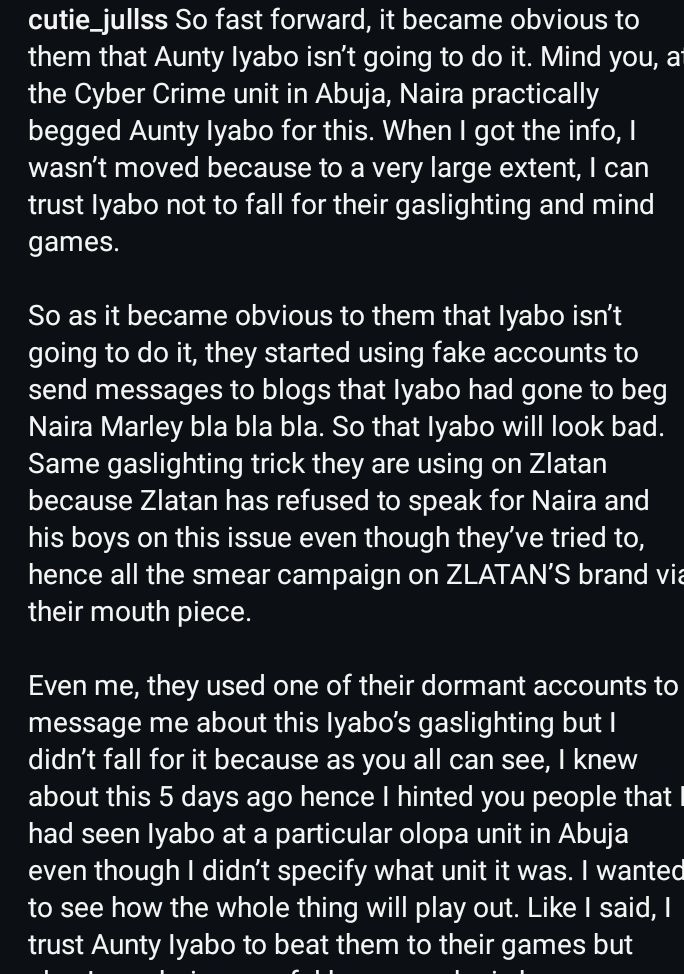 Furthermore, Cutie Juls claimed that Naira Marley’s legal team accused Iyabo Ojo of exonerating the singer.