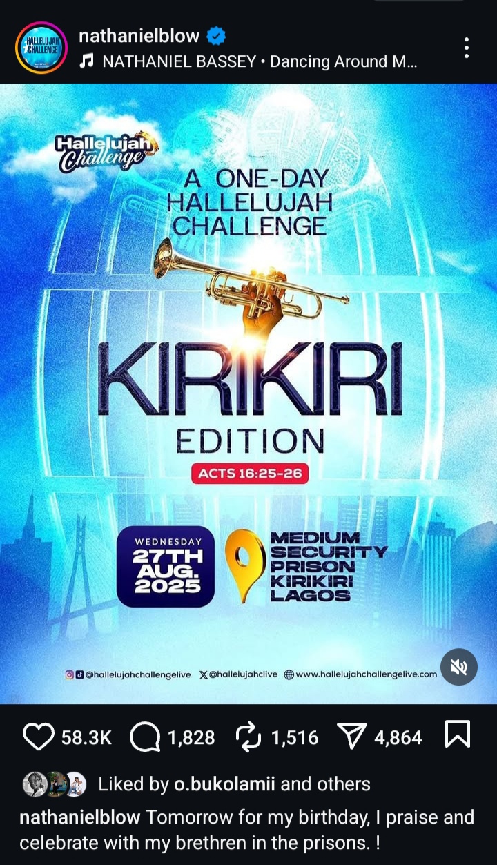 Gospel artist and pastor, Nathaniel Bassey, has revealed his intention to celebrate his 44th birthday with inmates at the Kirikiri Medium Security Prison in Lagos.