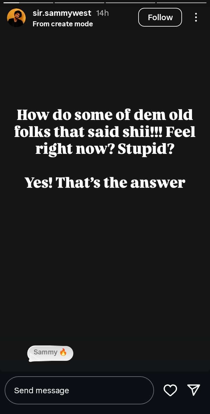 Regina Daniels’ brother, Sammy West, has stirred reactions online following his cryptic message shared shortly after news surfaced that the actress acquired a new house.