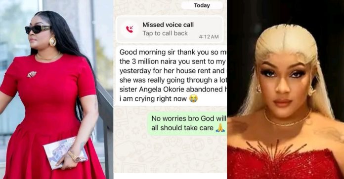 In the chat posted by Oil Money, a contact saved as Angela Okorie’s brother thanked him for sending ₦3 million to their mother for rent and upkeep.
