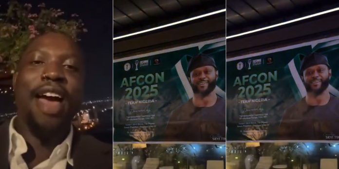 Apparently, the poster was advertising the 2025 African Cup of Nations, but it however had Tinubu’s photo on it.