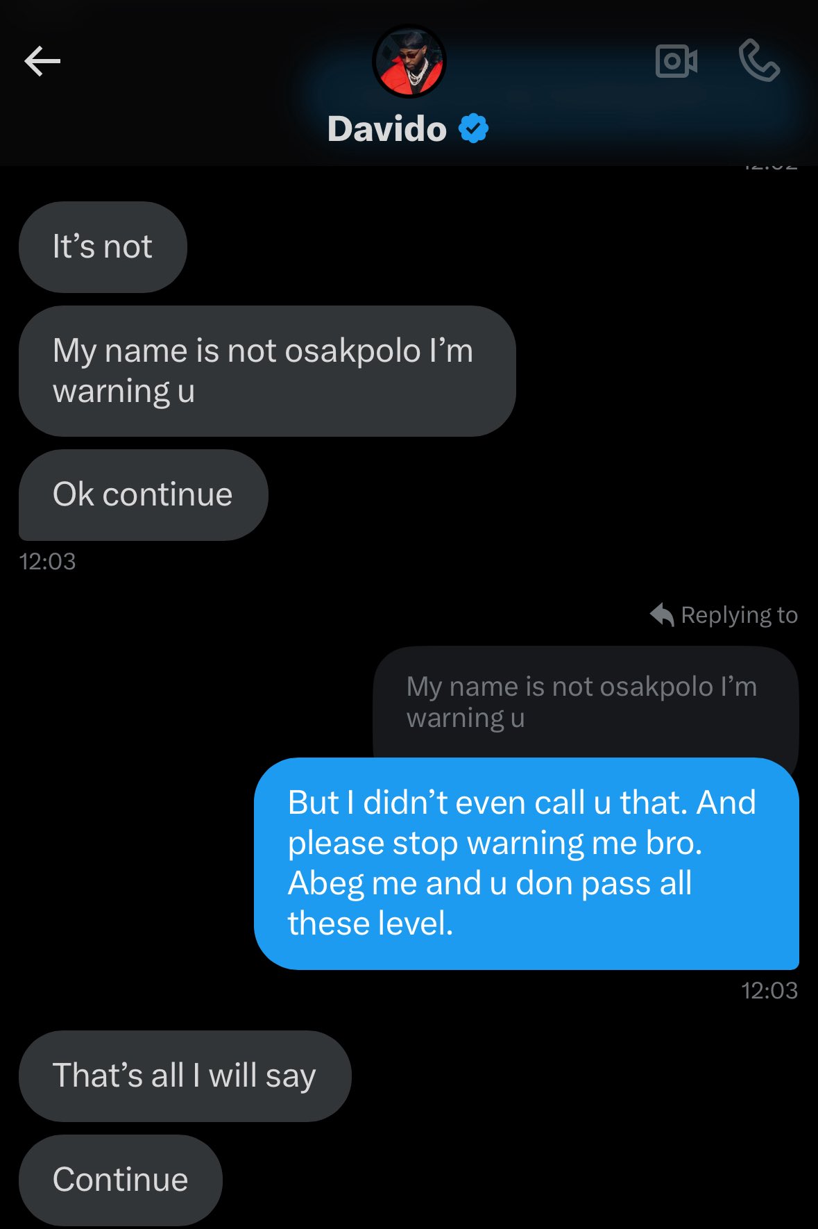 However, Tufab noted that he didn’t call him that and asked Davido to stop warning him.