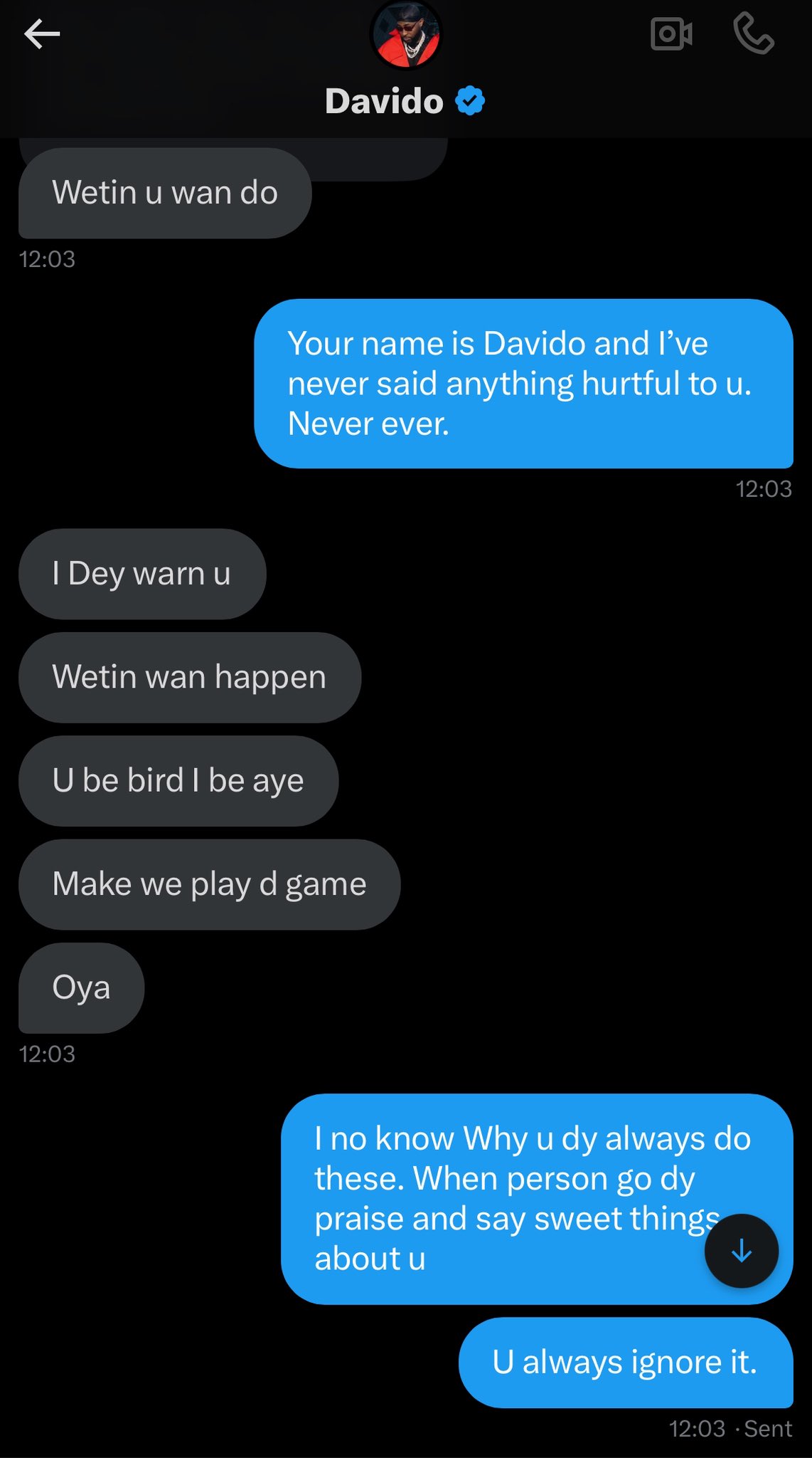 He took to his page on X to raise the alarm as he shared an alleged chat between him and Davido.