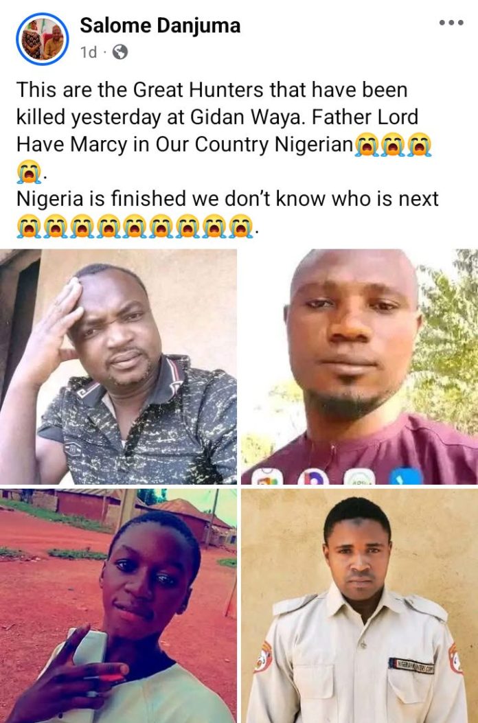 Gunmen have k!lled five people and injured two others in an attack on hunters’ office in the Gidan Waya community, Jema’a Local Government Area of Kaduna State.