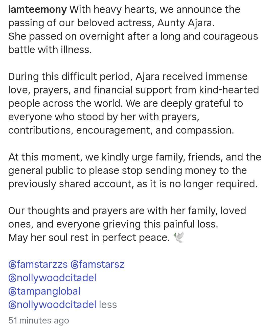 HomeNewsActress Aunty Ajara di£s after battling liver disease
