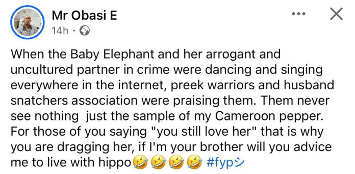 Posting a screenshot of the message he sent in 2022, Obasi wrote