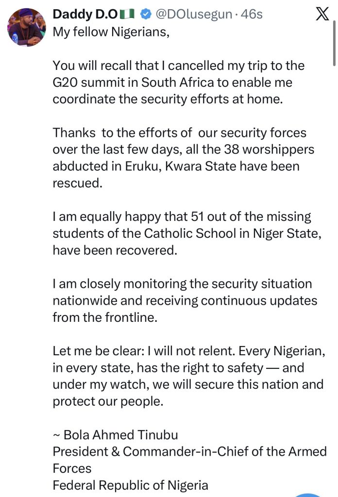 The 38 members of the Christ Apostolic Church in Eruku community in Kwara state who were abducted by bandits on Tuesday, November 18, have reganed their freedom.
