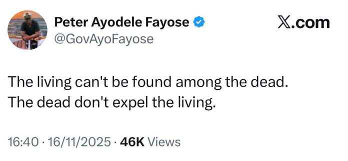 Responding via his X handle, Fayose said the “dead cannot expel the living.”