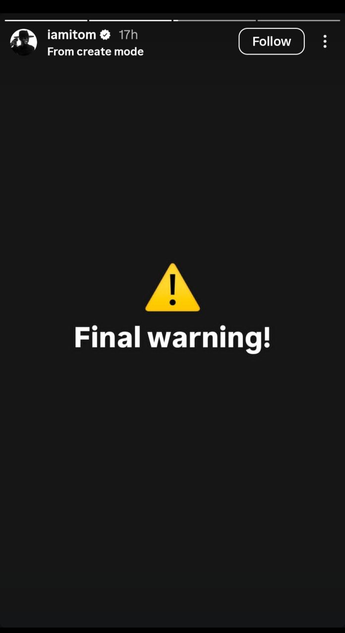 The content creator who married DANG founder, Ifedayo Agoro, this year, took to his Instagram stories to issue the “final warning”.
