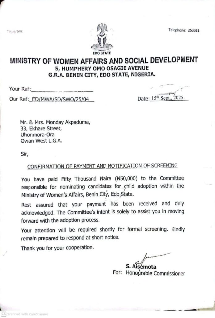 “After prolonged delays, he was allegedly informed that the adoption fee had been increased to ₦2m by the ministry, a claim that raised his suspicion and prompted him to report directly to the ministry.