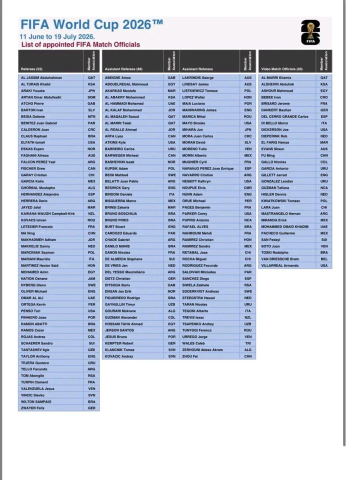 “This year’s FIFA World Cup will be the biggest in history, with a 48-team line-up and 104 matches to be contested across the most extensive geographical footprint in the tournament’s history,” Collina continued. “It’ll be the largest FIFA Team One ever, with 41 more match officials than at Qatar 2022. Each of them must be ready to be appointed for a match and to contribute actively to ensuring that the refereeing at the World Cup is a success. The fact that six women match officials have been selected continues a trend that was started four years ago in Qatar, as we aim to further develop women’s refereeing.”