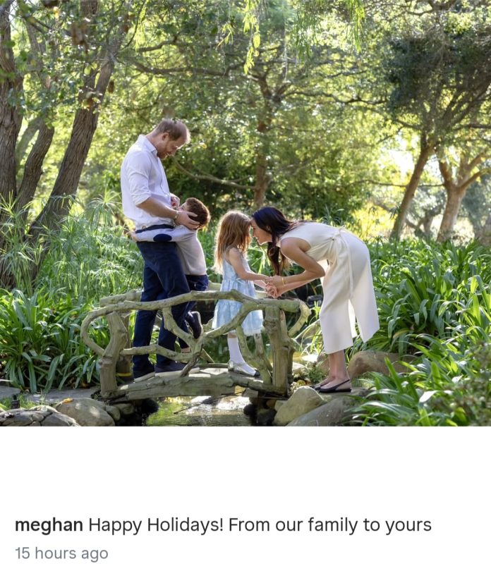 Meghan later posted a never-before-seen photo of the Sussex family to her Instagram profile on Friday, with the caption, “Happy Holidays! From our family to yours.”