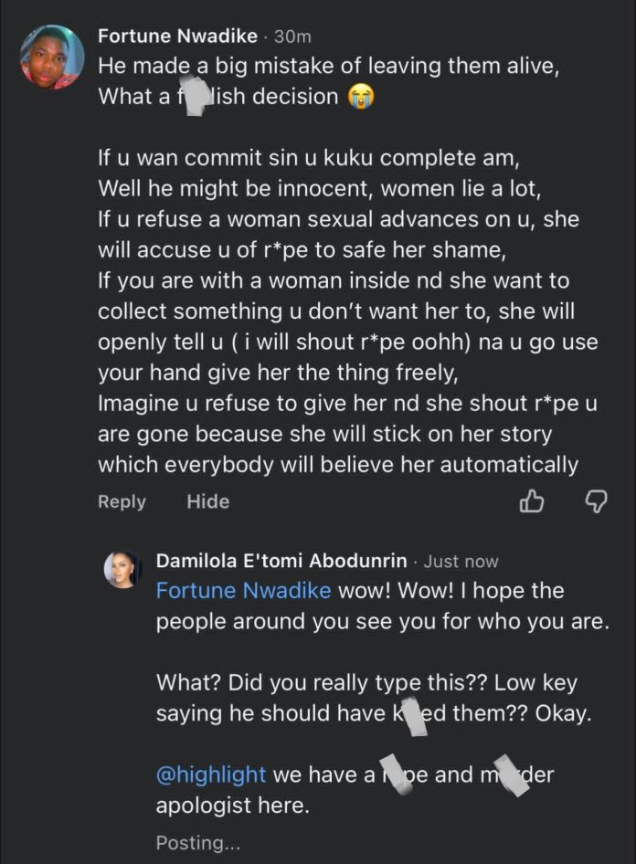 As people reacted to the sad incident, a man named Fortune Nwadike commented, stating that the suspect made a mistake letting the victims to leave alive.