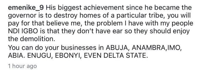 In a post shared on his Instagram page this evening, Emenike said the Igbos suffer these demolitions because they do not invest in their home states. He said that Igbos need to start investing in other states like Delta state.