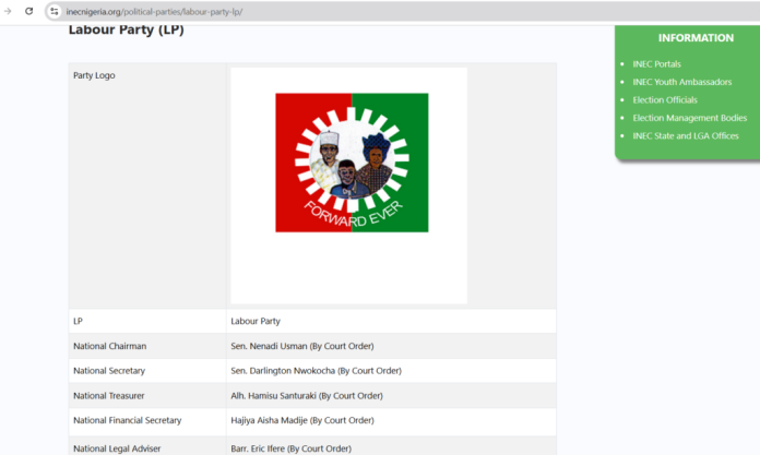 The Independent National Electoral Commission has recognised the Labour Party National Working Committee led by Nenadi Usman, following a court order directing the electoral body to do so.