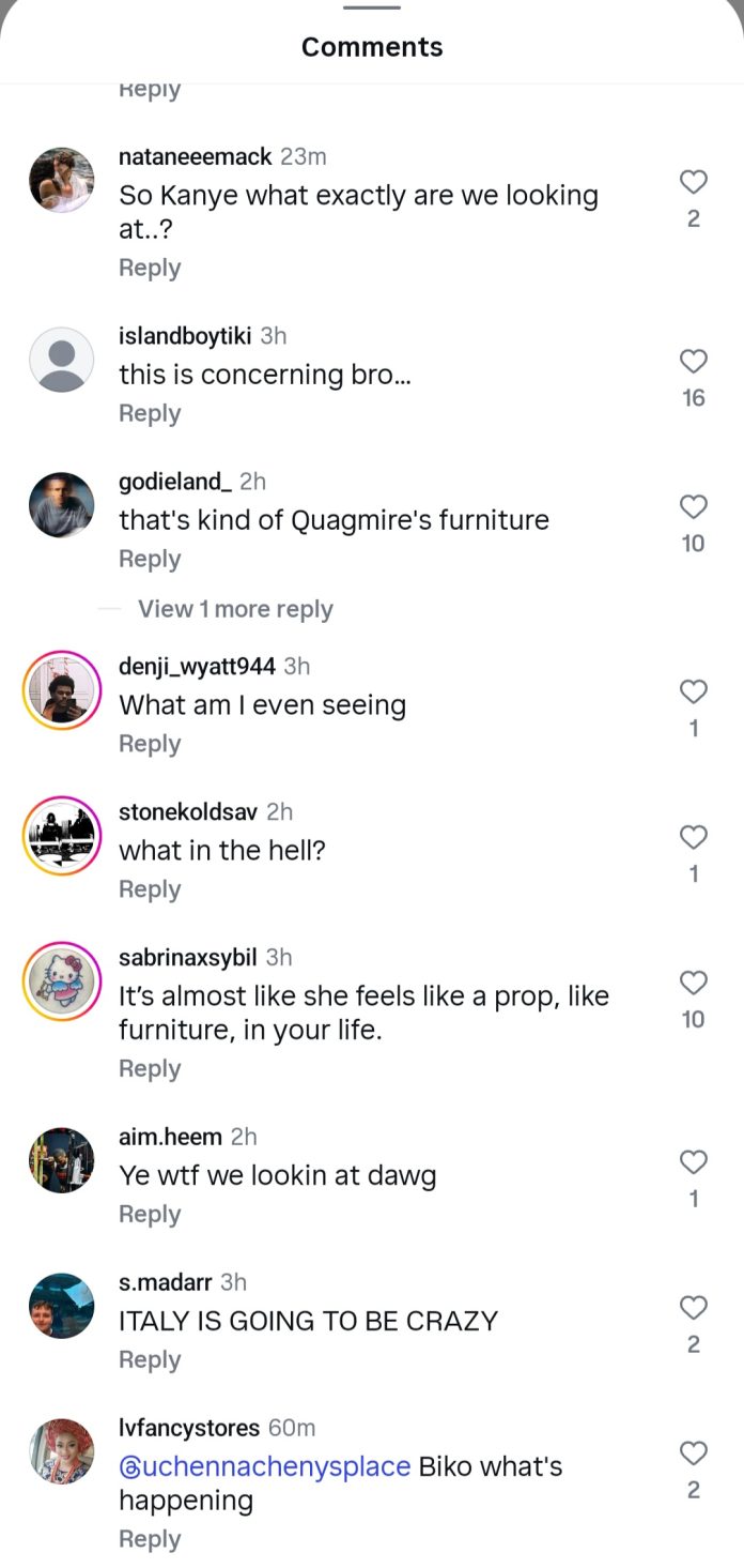 Commenters responded to Kanye’s post to express their confusion at the exhibition.