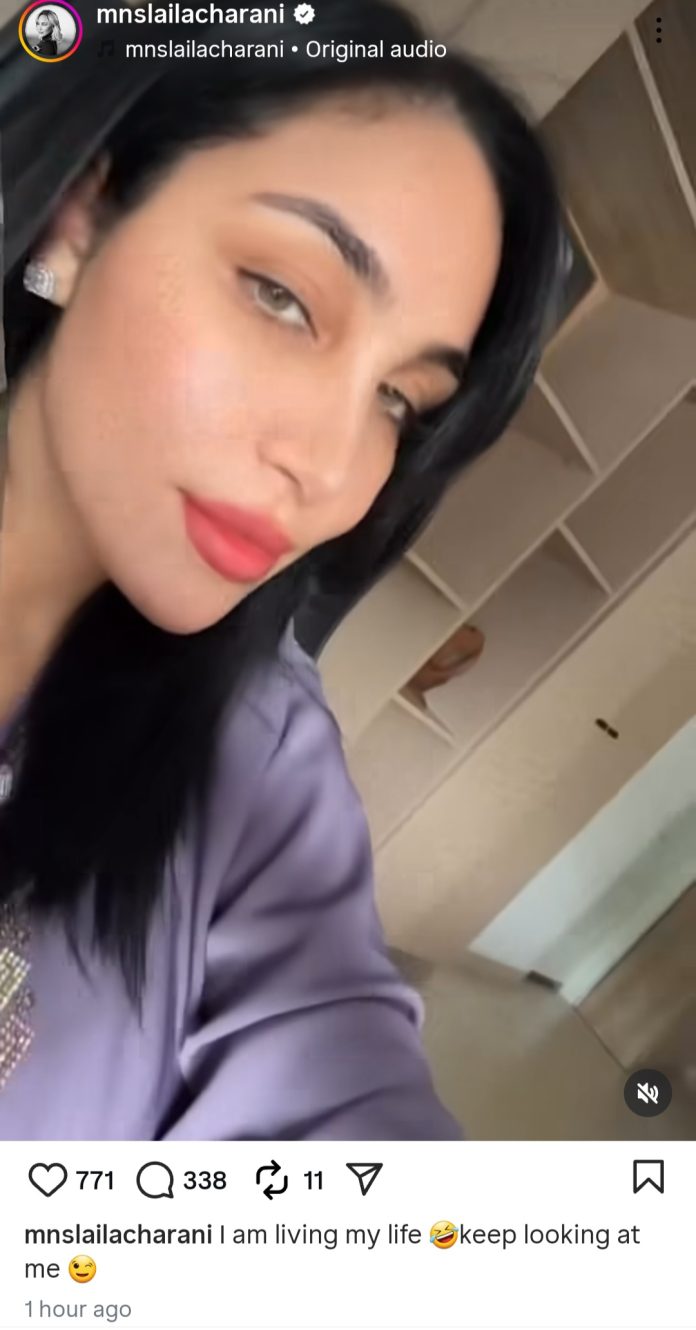 “I am living my life. Keep looking at me,” Laila then told her critics in a new post.