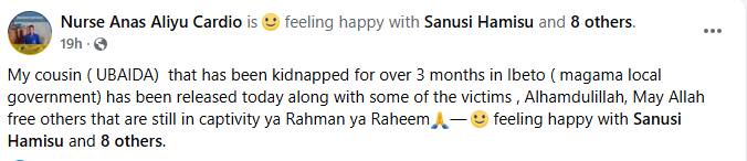 Hours before his abduction, he had posted on Facebook warning locals about the movement of bandits from Uccu towards Ibeto with a herd of stolen cattle.