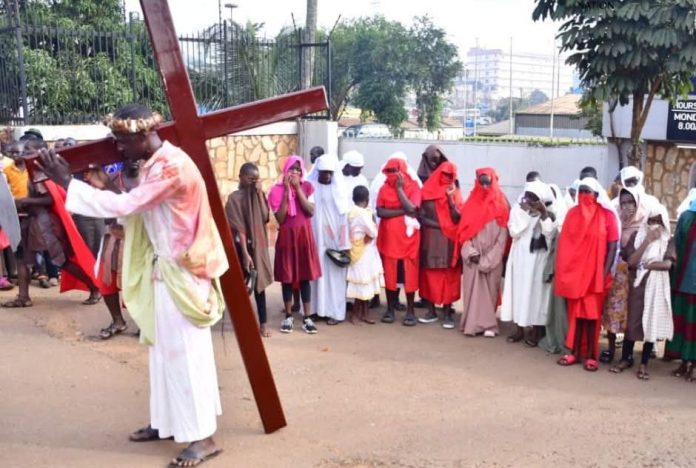 A second-year law student at Kampala International University, Dennis Zziwa, sustained injuries while portraying Jesus Christ during a Good Friday Way of the Cross procession at Our Lady of Africa Church, Mbuya, Uganda.