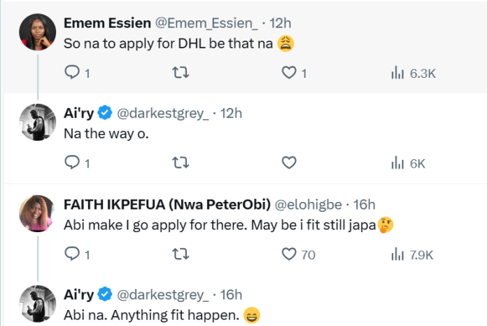 The post has since sparked reactions online, with some X users joking about applying to DHL Nigeria next.