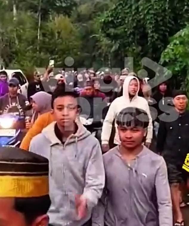 The victim, identified only as T, was found battered and in a state of shock, sparking anger within the community. Ali fled to a relative’s house before slipping into a nearby forest to escape the villagers’ wrath, according to local media. But he was caught on December 3, when he emerged from the woods to look for food. Passersby immediately recognised the suspect and lynched him. The attack was caught on camera. The vigilantes were said to have ‘chopped up’ his genitals before parading his limp body in the community. Senior Adjunct Commissioner Muhammad Aldy Sulaeman, Gowa Police Chief, said police rushed to Rappolemba Village to control the mob. He said: ‘We can confirm that several videos have circulated regarding an alleged assault against an individual.
