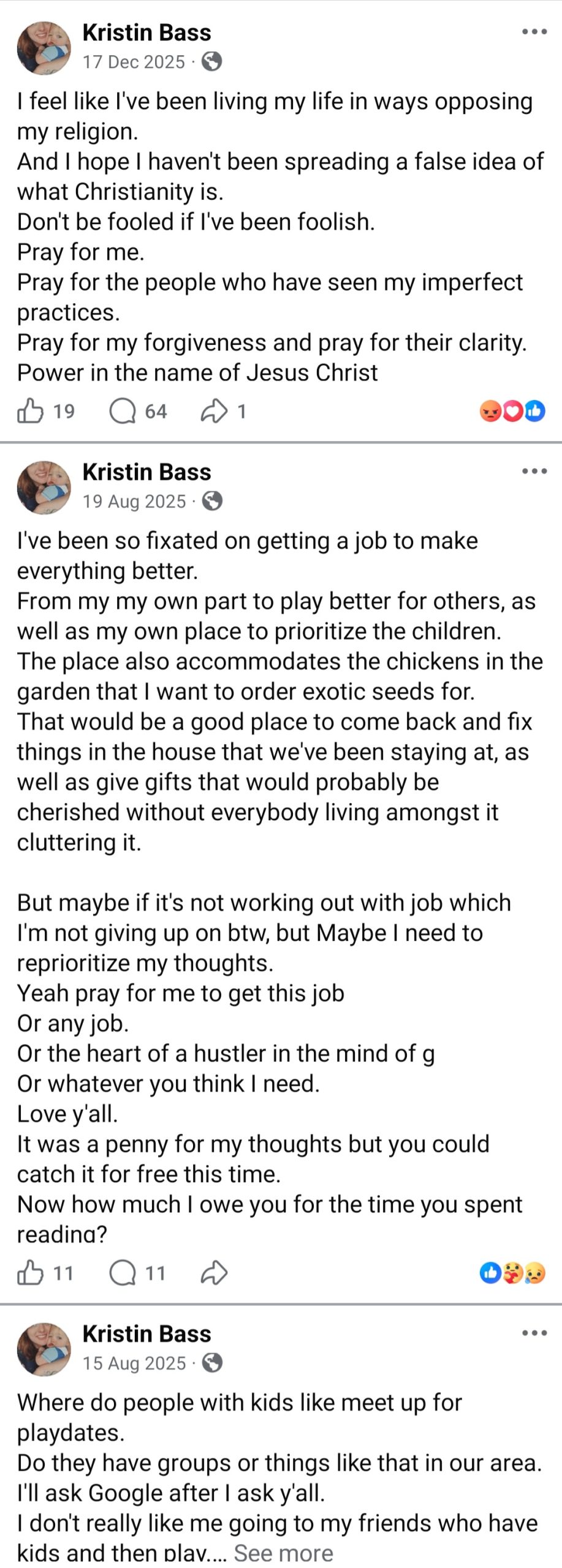 A look at Bass’ Facebook account shows that her last post was on Dec. 17, 2025, two weeks before the incident.