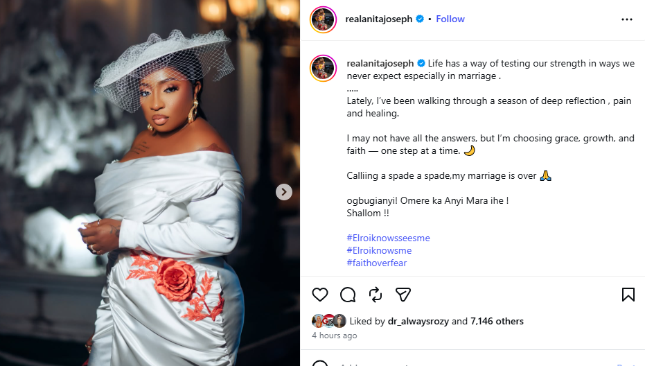 Actress Anita Joseph has confirmed the crash of her marriage to entertainer, Fisayo Olagunju aka MC Fish.