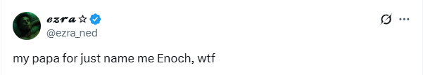 Ezra, who has been on X since 2016, said it would have been better if his father had named him Enoch.