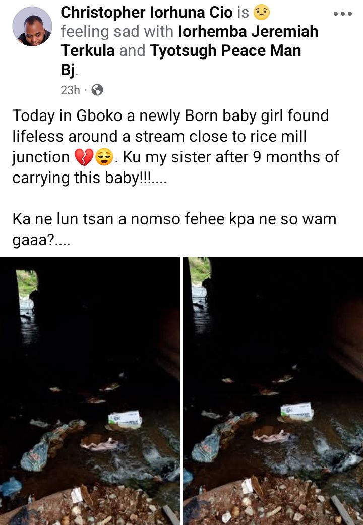 The post Newborn baby found d3ad in stream in Gboko appeared first on Linda Ikeji Blog.