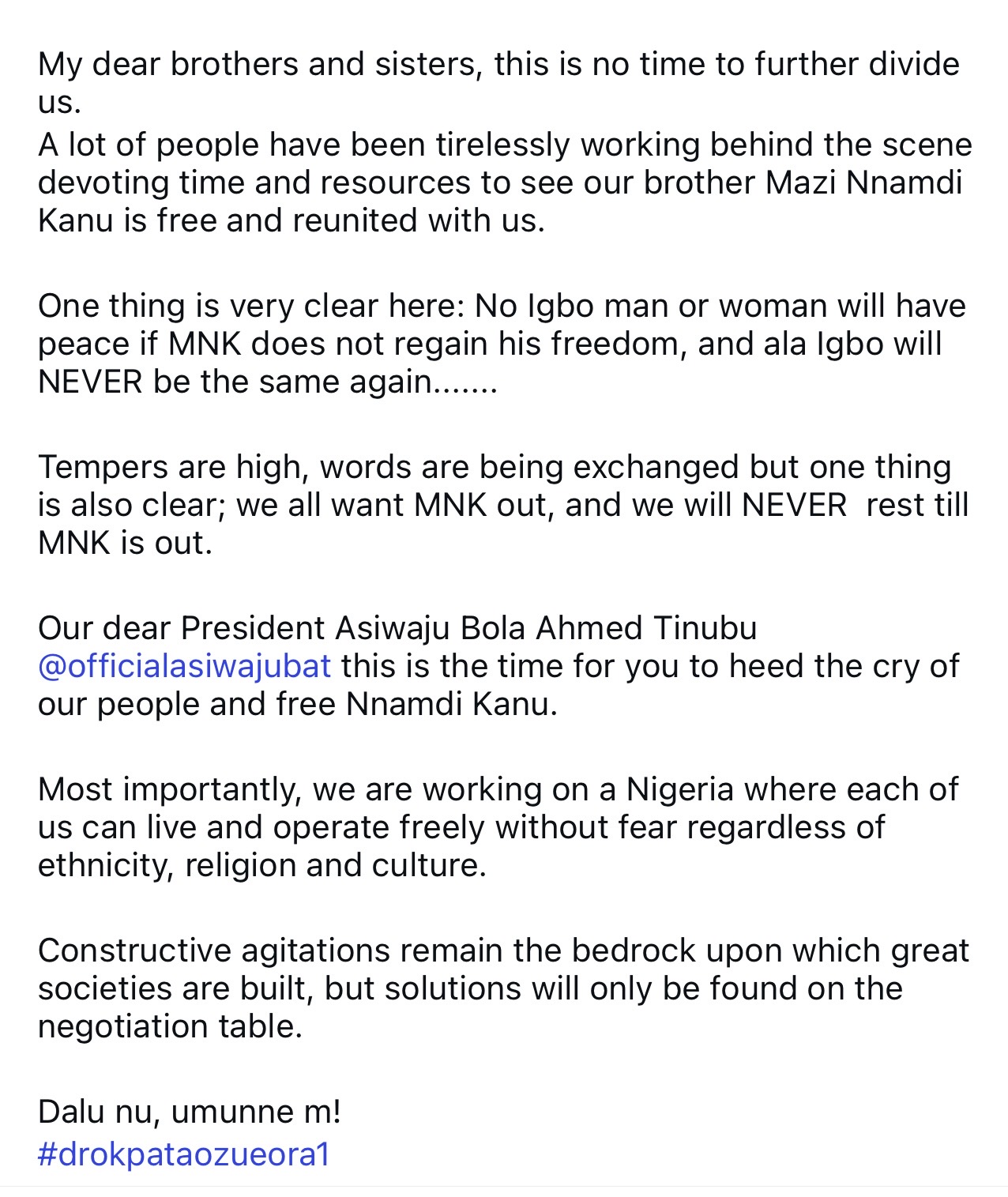 The post No Igbo will have peace until Nnamdi Kanu regains freedom Obi Cubana tells Tinubu appeared first on Linda Ikeji Blog.