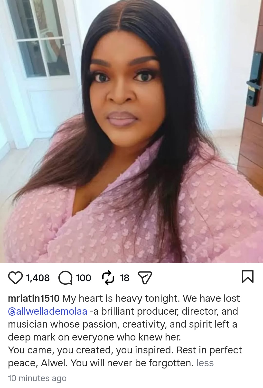 Nollywood actress and producer, Allwell Ademola, has did on Saturday, December 27, 2025, at the age of 43. The sad news was disclosed by colleagues of the deceased via their respective social media accounts. Ademola, 43, is said to have suffered a heart attack at her residence before she was taken to hospital, according to reports circulating within the film community. Allwell Ademola was a granddaughter of the late Sir Adetokunbo Ademola, the highly respected Nigerian lawyer and former Chief Justice of Nigeria.
