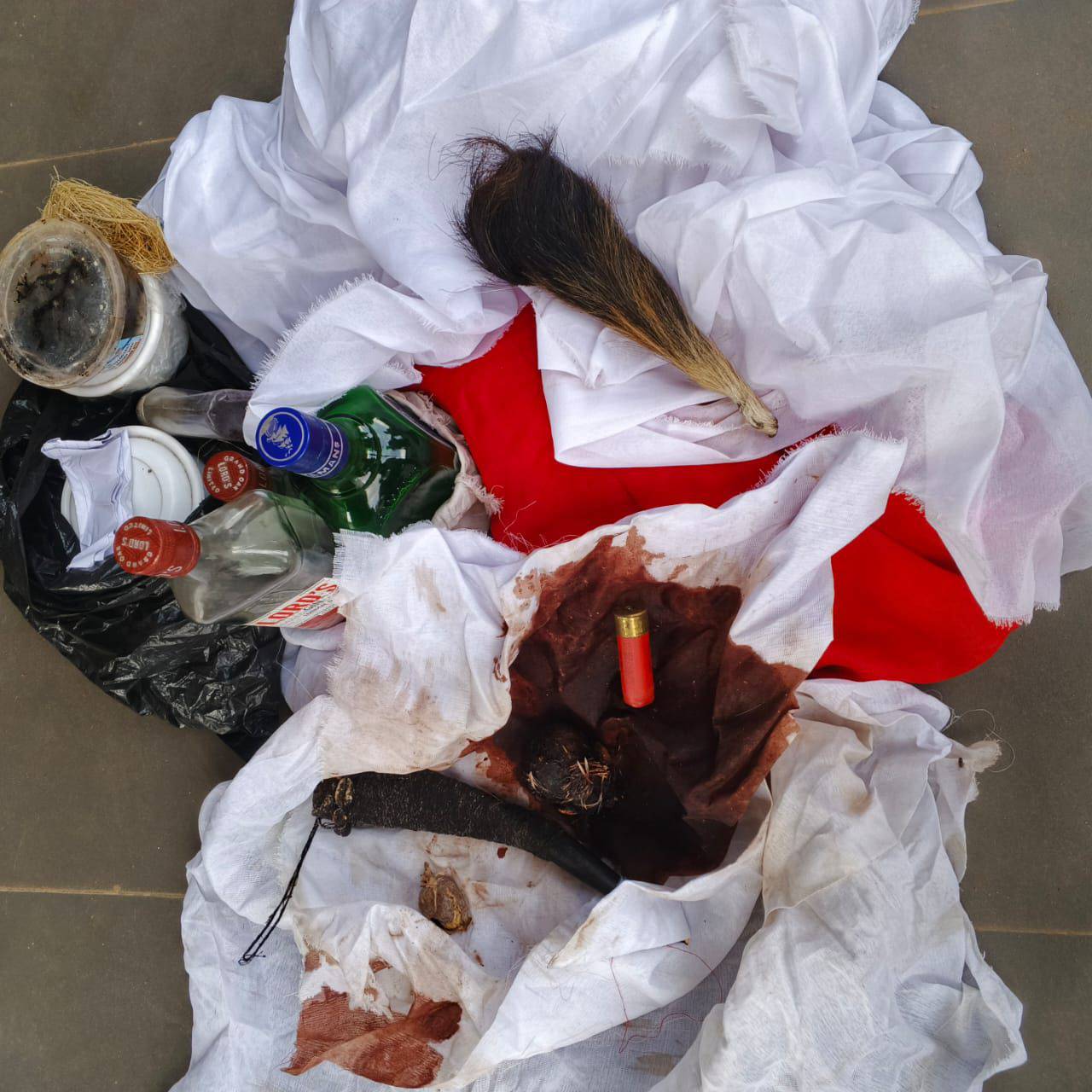 “In the course of the operation, several incriminating items were recovered from Ifeoluwa Julius, including one expended cartridge, fetish items, red and white cloth stained with blood.