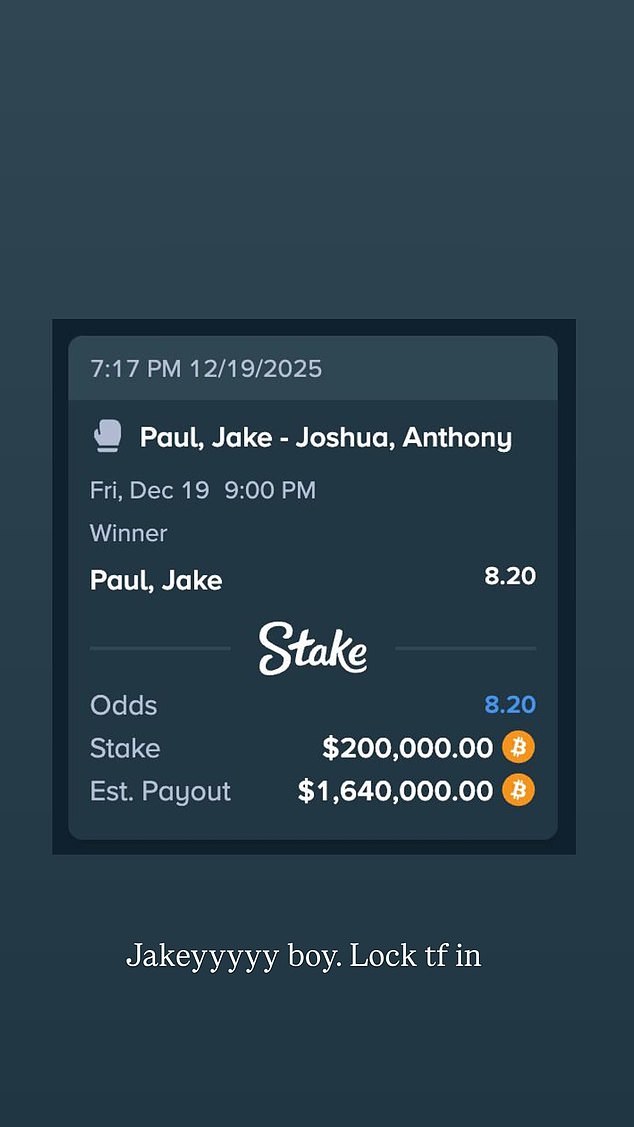 Drake had boasted about his bet on Instagram, sharing the huge amount he had wagered, with the caption: “Jakeyyyyy boy. Lock tf in” written underneath.