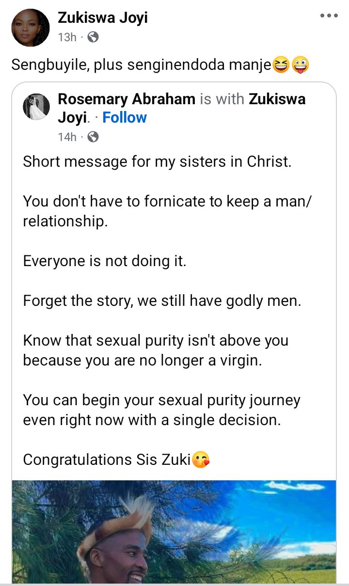 The Durban University of Technology graduate has over the years shared her journey with s3xual purity.