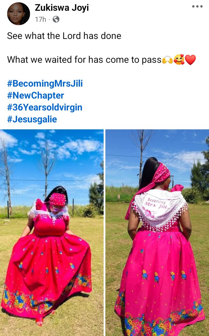 A 36-year-old South African woman, Zukiswa Joyi, who is a virgin, has gotten married.
