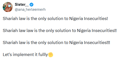 Sharia law is the only solution to Nigeria’s insecurity. Let’s implement it fully