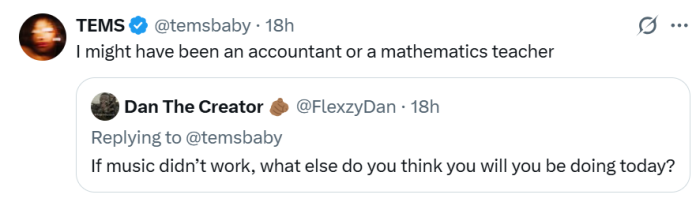 During a quick interactive session with fans on X on Tuesday, a curious fan asked her what she would be doing today if music didn’t work out.