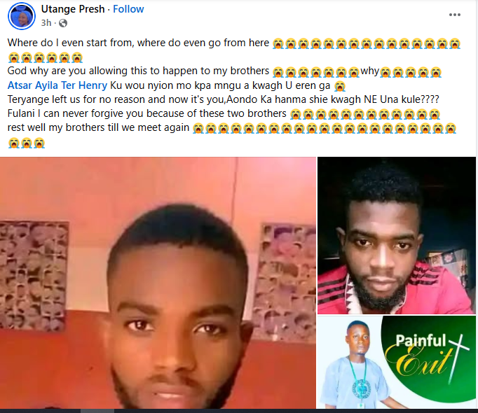 The victims Mr. Ioryer Kwaghkaha OLS, Ayila Atsar, and another yet-to-be-identified individual were reportedly shot and later brutally attacked on their farms in Gilim Ashi village, a settlement along the Naka–Agagbe road.