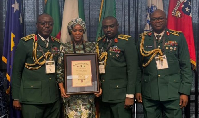 Maj.-Gen. Adeleke Ayannuga received the award on behalf of the current Chief of Army Staff, Lt.-Gen. Olufemi Oluyede, alongside Mrs. Maria Lagbaja, the widow of the late Army Chief.