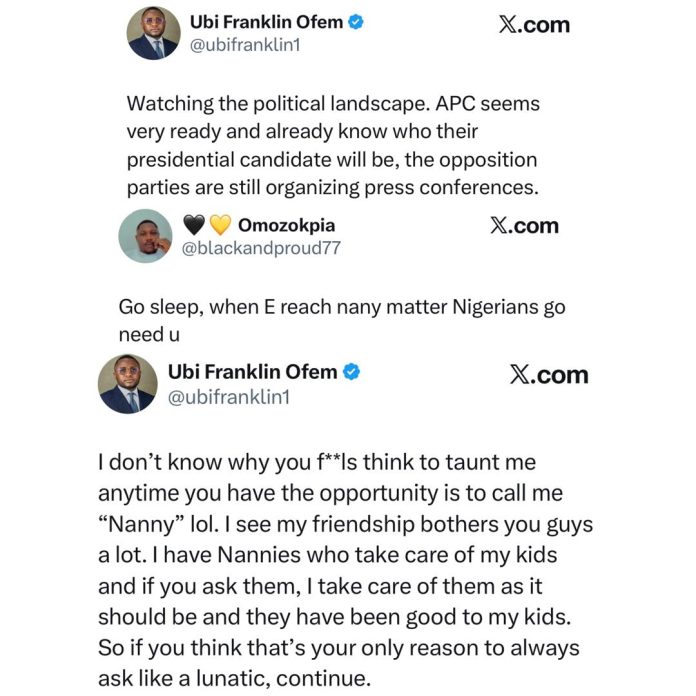 An X user reposted Ubi’s post then asked him to ‘go and sleep’ and that when it is time to talk about Nanny issues, he will be called to speak.