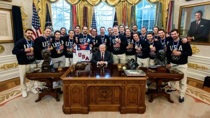The controversy began after Trump phoned the men’s hockey team to congratulate them on their dramatic 2-1 overtime victory against Canada in the gold medal match.